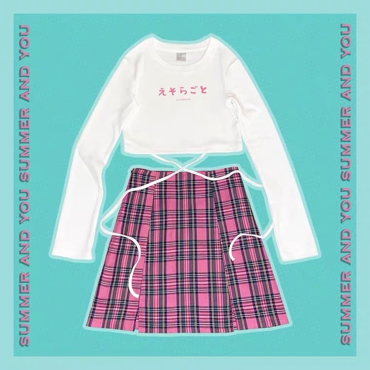 玫瑰粉色格子休闲百搭复古少女半身裙 玫瑰格