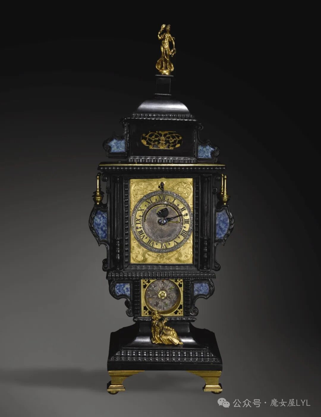 文艺复兴时期乌木、青金石和镀金天文圣体匣台钟,带交叉擒纵机构,卡斯帕·布施曼二世,奥格斯堡,约 1590 年