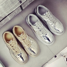 欧洲站2016新款秋季韩版女鞋运动鞋单鞋银色板鞋厚底松糕时尚潮鞋
